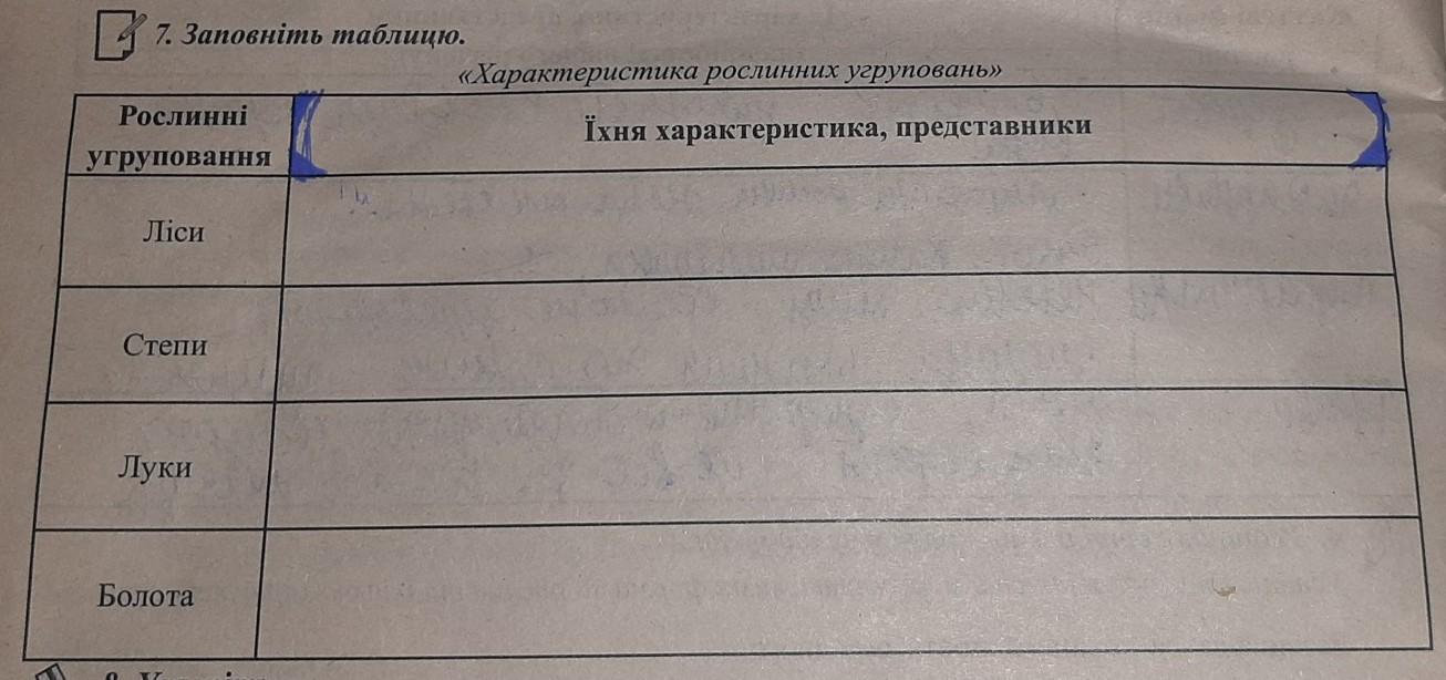 Болота:надмірно зволожена ділянка земної поверхні, вкрита вологолюбними рослинами. Мох, хвощ, висока густа осока, очерет.