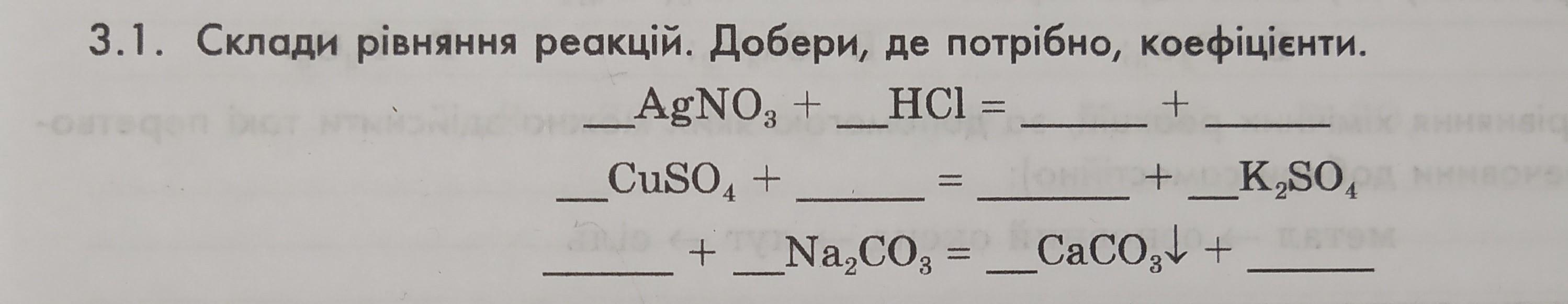3.1. Склади рівняння реакцій. Добери, де потрібно, коефіцієнти.