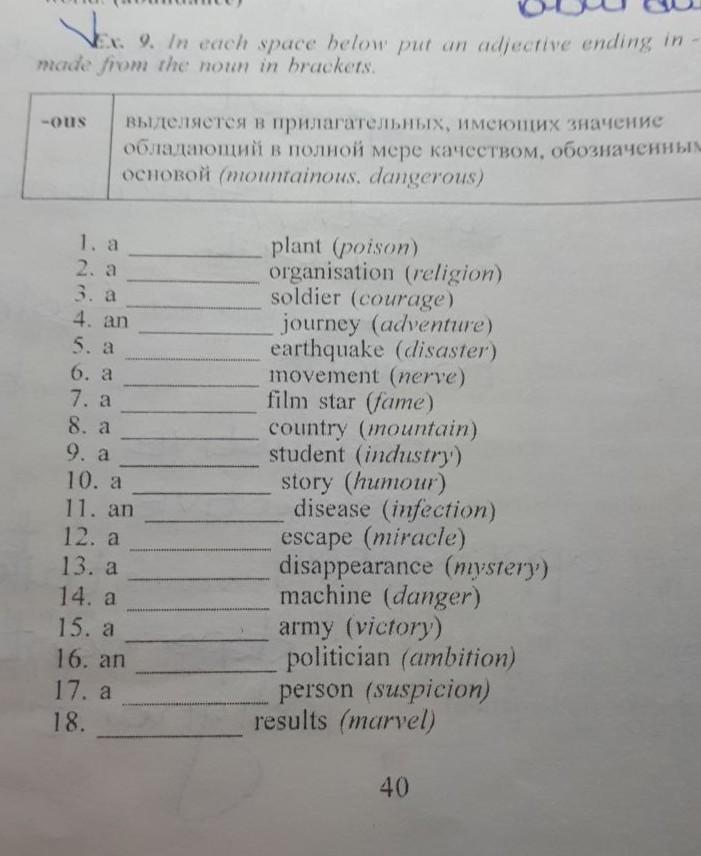- stands out in adjectives that have the meaning of having full quality, indicated by the basis (mountainous, dangerous).