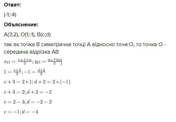 так як точка В симетрична точці А відносно точи О, то точка О - середина відрізка АВ