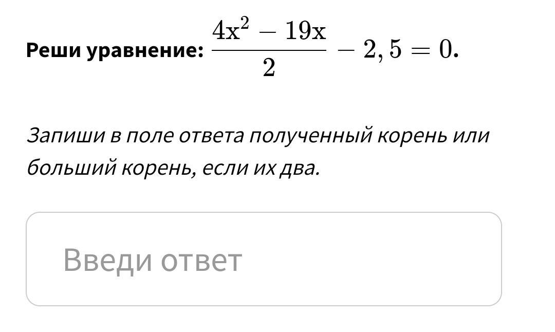 Объяснение: (4х²-19х)/2 -2,5=0