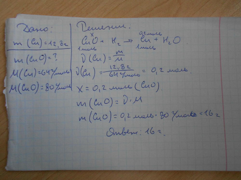 Сколько граммов оксида меди (II) вступило в реакцию с водородом, если было получено 12,8 г меди ?