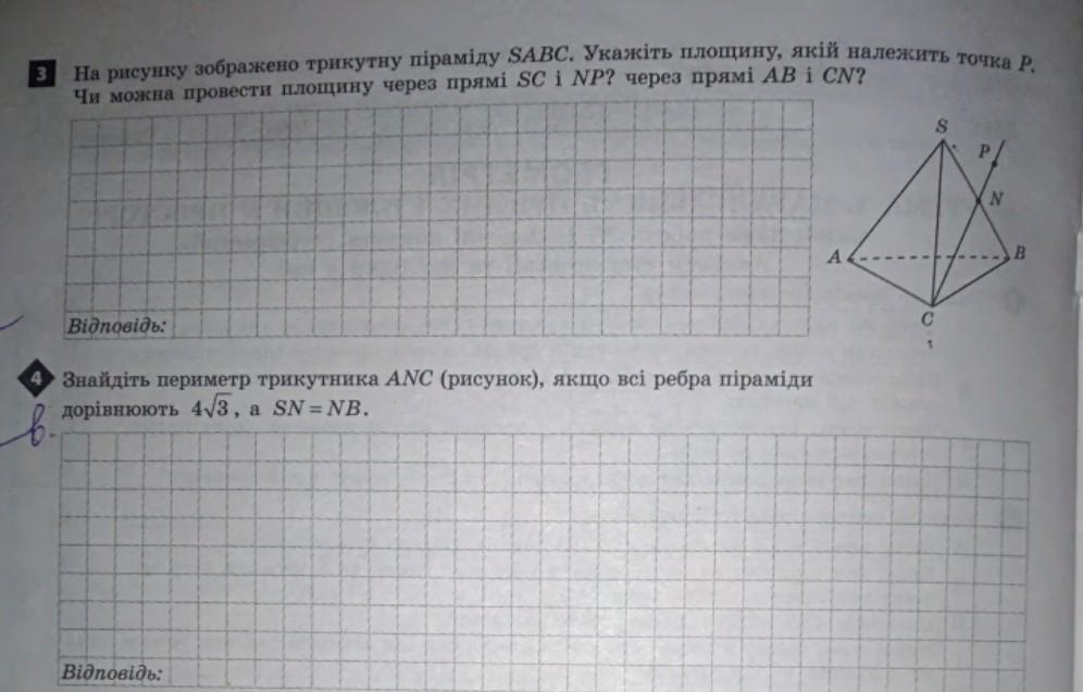 4. у треугольника ANC известна сторона АС, она равна 4√3 см, две другие - высоты правильных треугольников (SCB) и (SАB), чтобы найти эти высоты, ( а они высотами являются потому что по условию являются медианами, а медианы, проведенные к любой стороне в правильном треугольнике и высоты), определяются ка а√3/2, где а- сторона треугольника, а=4√3, значит, периметр искомого треугольника равен 2а√3/2+4√3=2*4√3*√3/2+4√3=