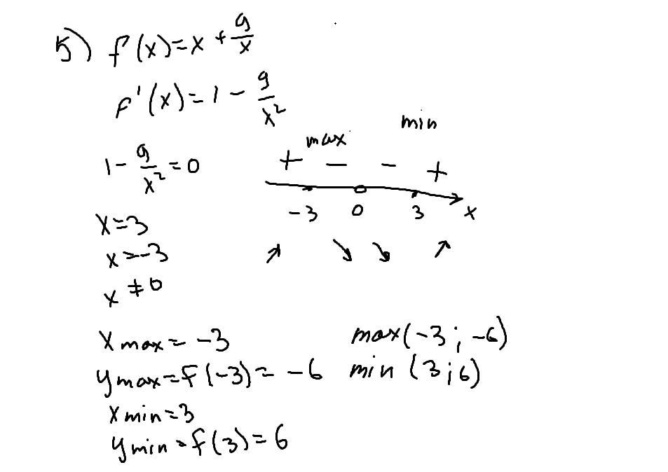 5) x+9/x=x²+9; x0=-9/2=-4,5; y0=81/4+9=(81+36)/4=29,25; Min(-4,5;29,25
