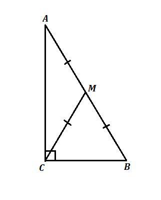 Медиана, проведенная в прямоугольном треугольнике к гипотенузе, равна половине гипотенузы .