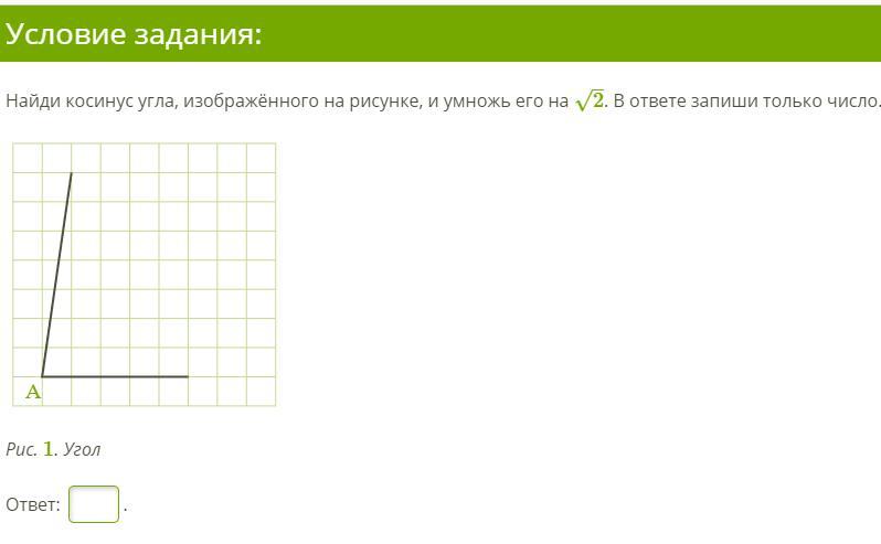 Найди косинус угла, изображённого на рисунке, и умножь его на √2 . В ответе запиши только число.
