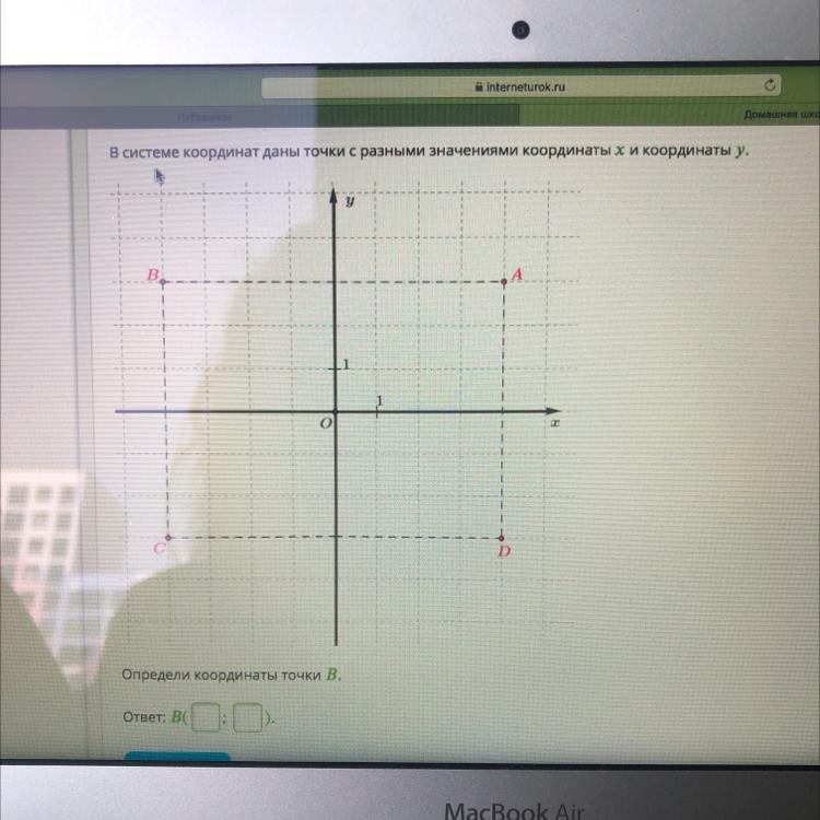 Определи координаты точки В.
