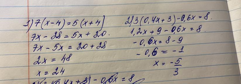 1) 7(х-4)=5(х+4)