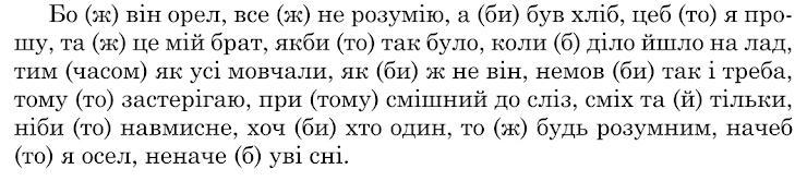 бо ж, все ж, я би, це б, та ж, якби то так, коли б, тим часом, якби ж, немовби, тому то, при тому, та й, ніби то, хоч би, тож, начебто, неначе б.
