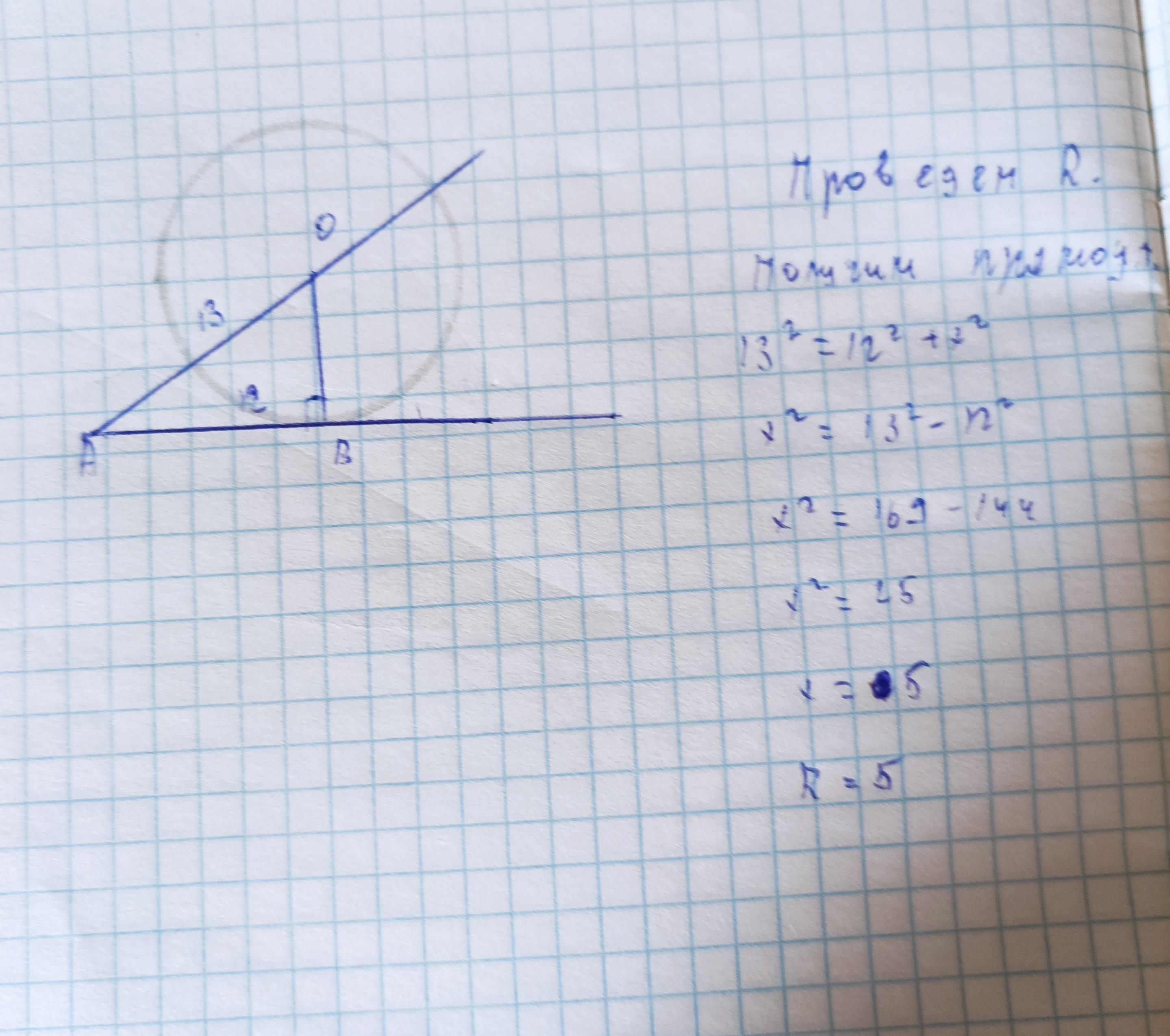 К окружности с центром в точке О проведены касательная АВ и секущая АО. Найдите радиус окружности, если АВ = 12 см, АО = 13 см.