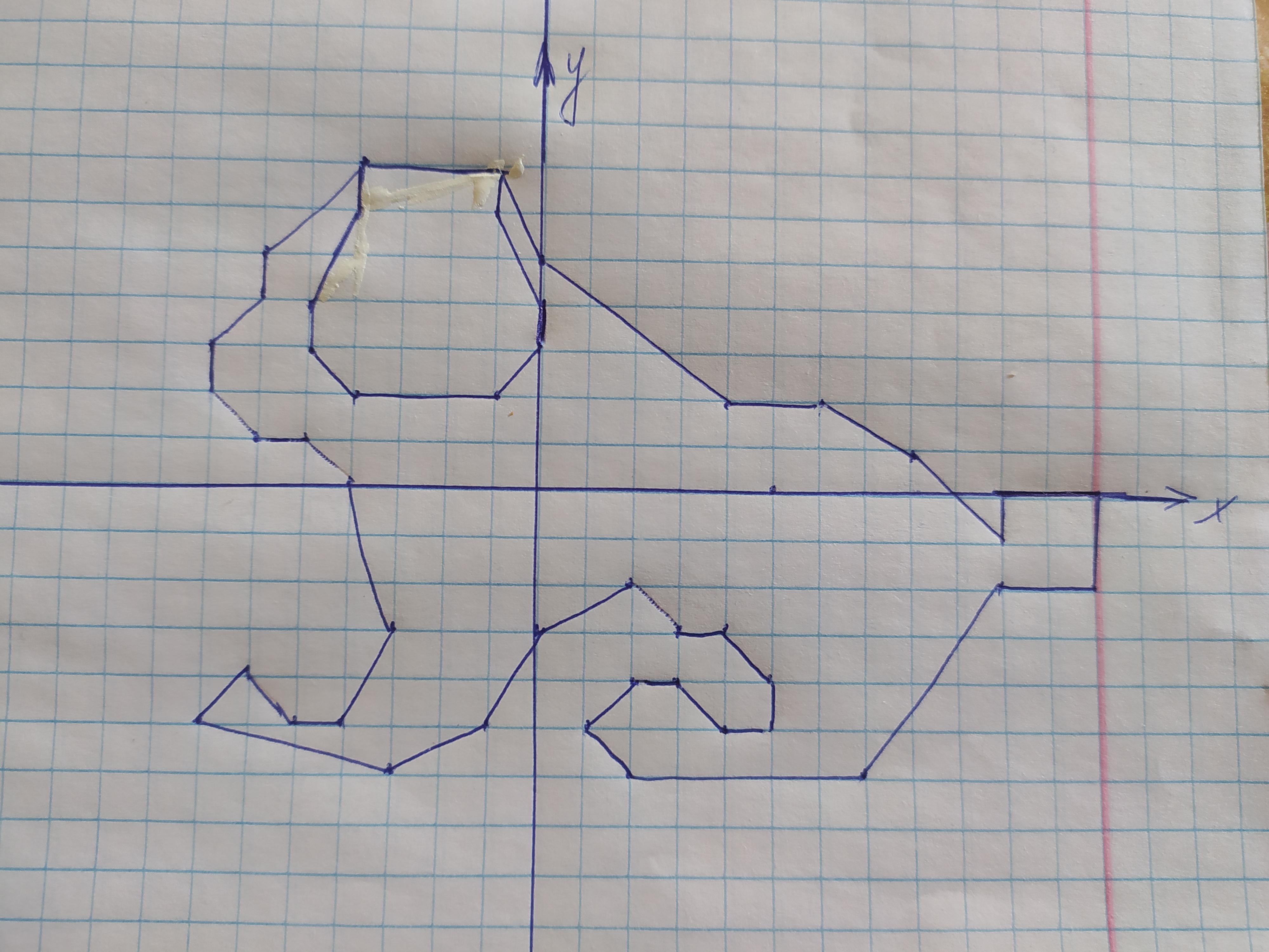 (–4;7); (–6;5); (–6;4); (–7;3); (–7;2); (–6;1); (–5;1); (–4;0); (–3;–3); (–4;–5); (–5;–4); (–6;–4); (–7;–5); (–3;–6); (–1;–5); (0;–3); (2;–2); (3;–3); (4;–3); (5;–4); (5;–5); (4;–5); (3;–4); (2;–4); (1;–5); (2;-6); (7;–6); (10;–2); (12;–2); (12;0); (10;0); (10;–1); (8;1); (6;2); (4;2); (0;5); (–1;7); (–1;6); (0;4); (0;3); (–1;2); (–4;2); (–5;3); (–5;4); (–4;6); (–4;7); (–1;7). я в 8 классе дичь помогите пожалуйста даю все баллы!!!!!