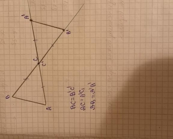 Побудувати довільний трикутник АВС . Побудувати трикутник симетричний :