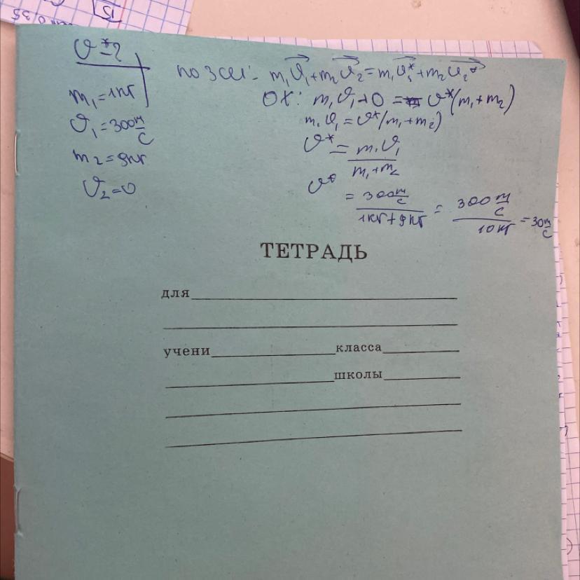 U = (1·300 + 9·0) / (1 + 9) = 300 / 10 = 30 м/с