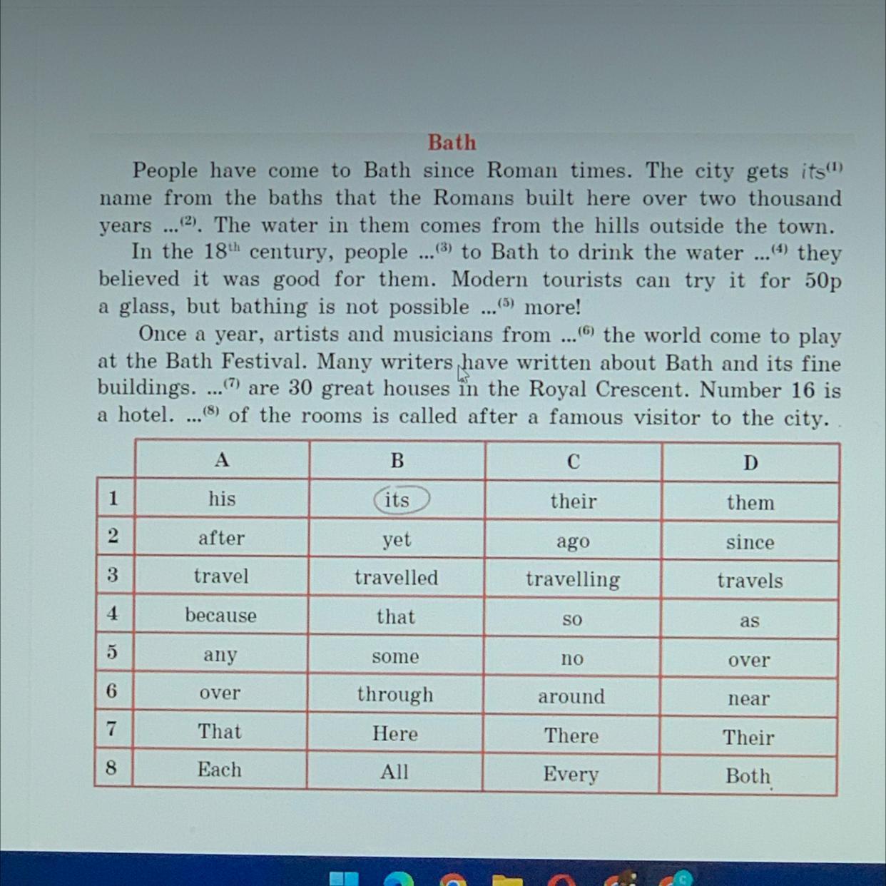 2-ago , 3-travelled , 4-because , 5-any , 6-around, 7- there , 8-All
