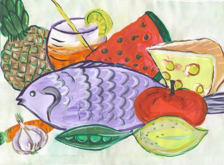 Можешь нарисовать рисунок на котором нарисована полезная еда: фрукты, овощи, рыба, молочные продуктыпродукты
