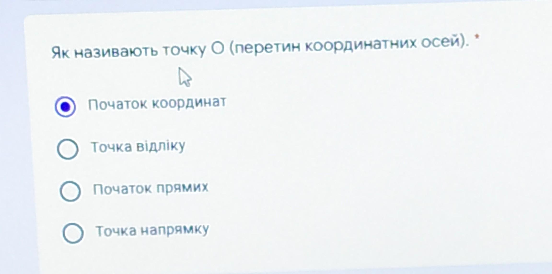 Початок координат правилтна відповідь