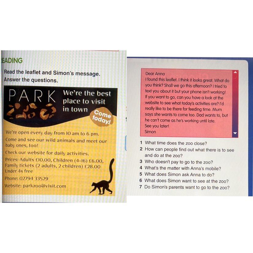 5. Simon asks Anna to have a look at the zoo website to see what today's activities are.