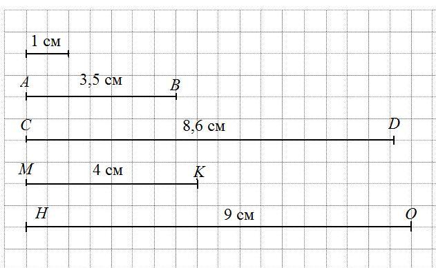 Запиши приближенную длину обоих отрезков и построй новые отрезки МК и НО с полученной длиной.