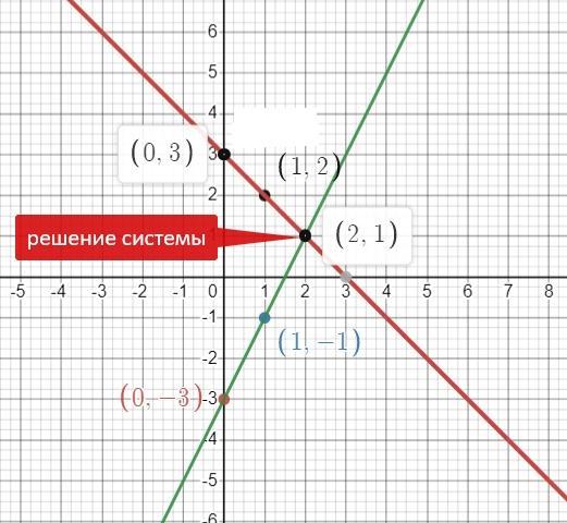 Затем находим точку пересечения графиков - это и есть решение системы.