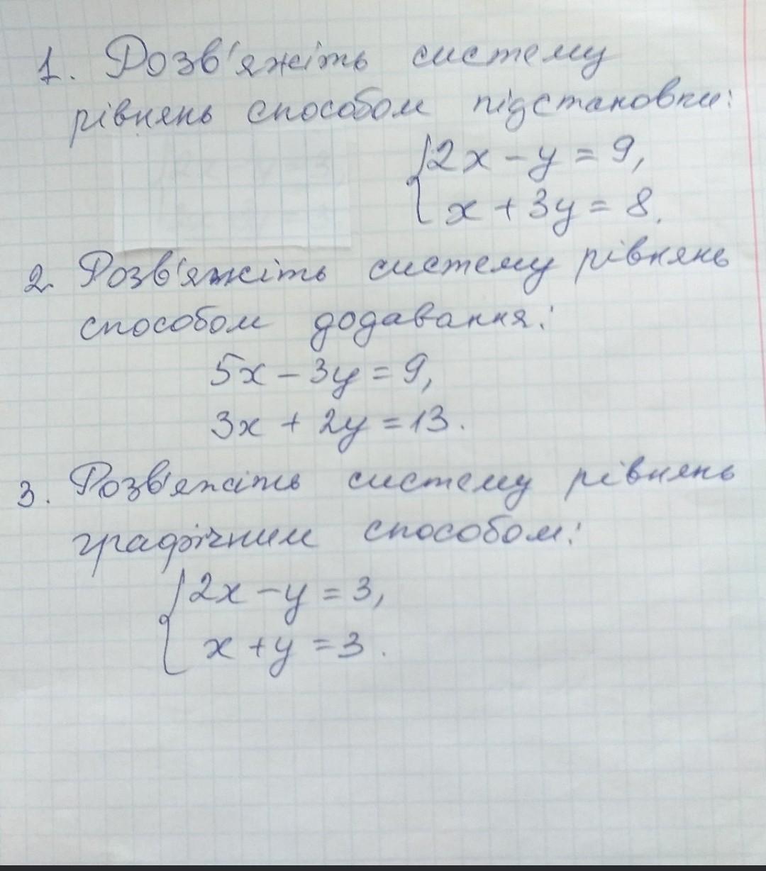 Из первого уравнения выражаем у и подставляем это во второе уравнение. Находим х, затем по первому уравнению находим у