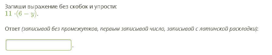 Чтобы умножить 11 на 6−y, используйте свойство дистрибутивности.