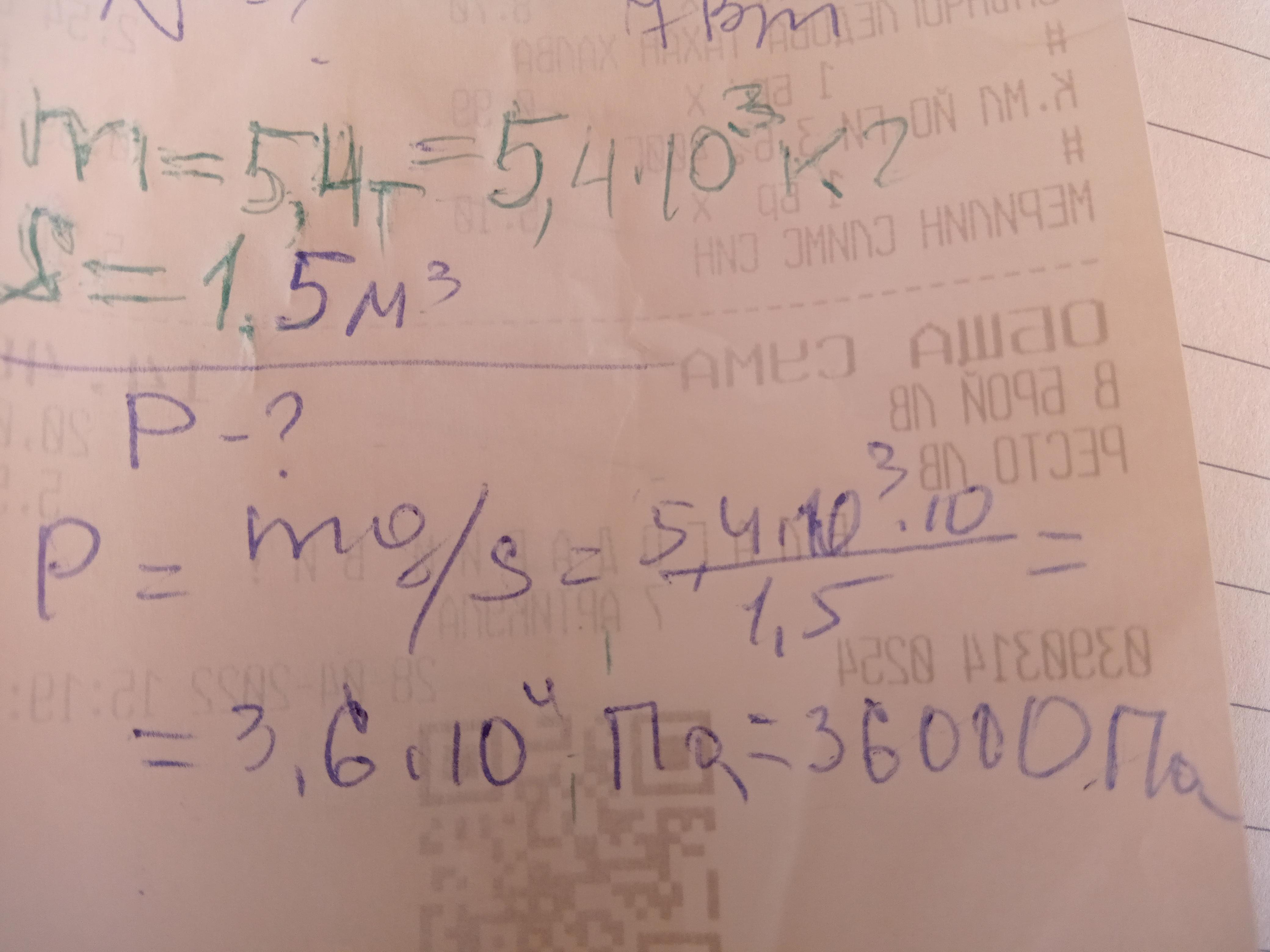 P=m*g/S = 5400*10/1.5