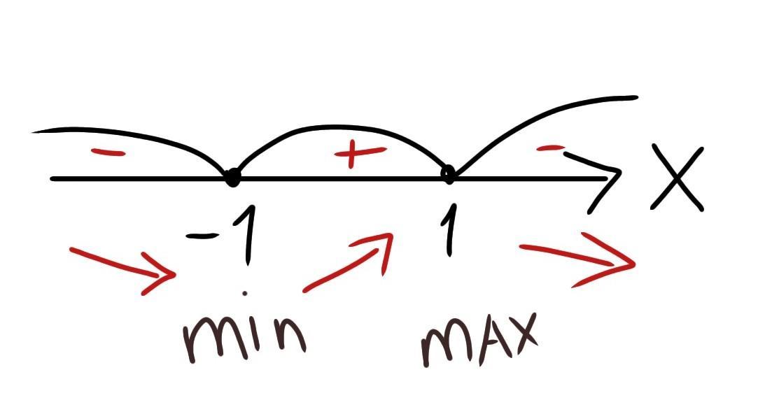 3. Встановлюємо знак похідної та поведінку функцію на проміжку (на фото)