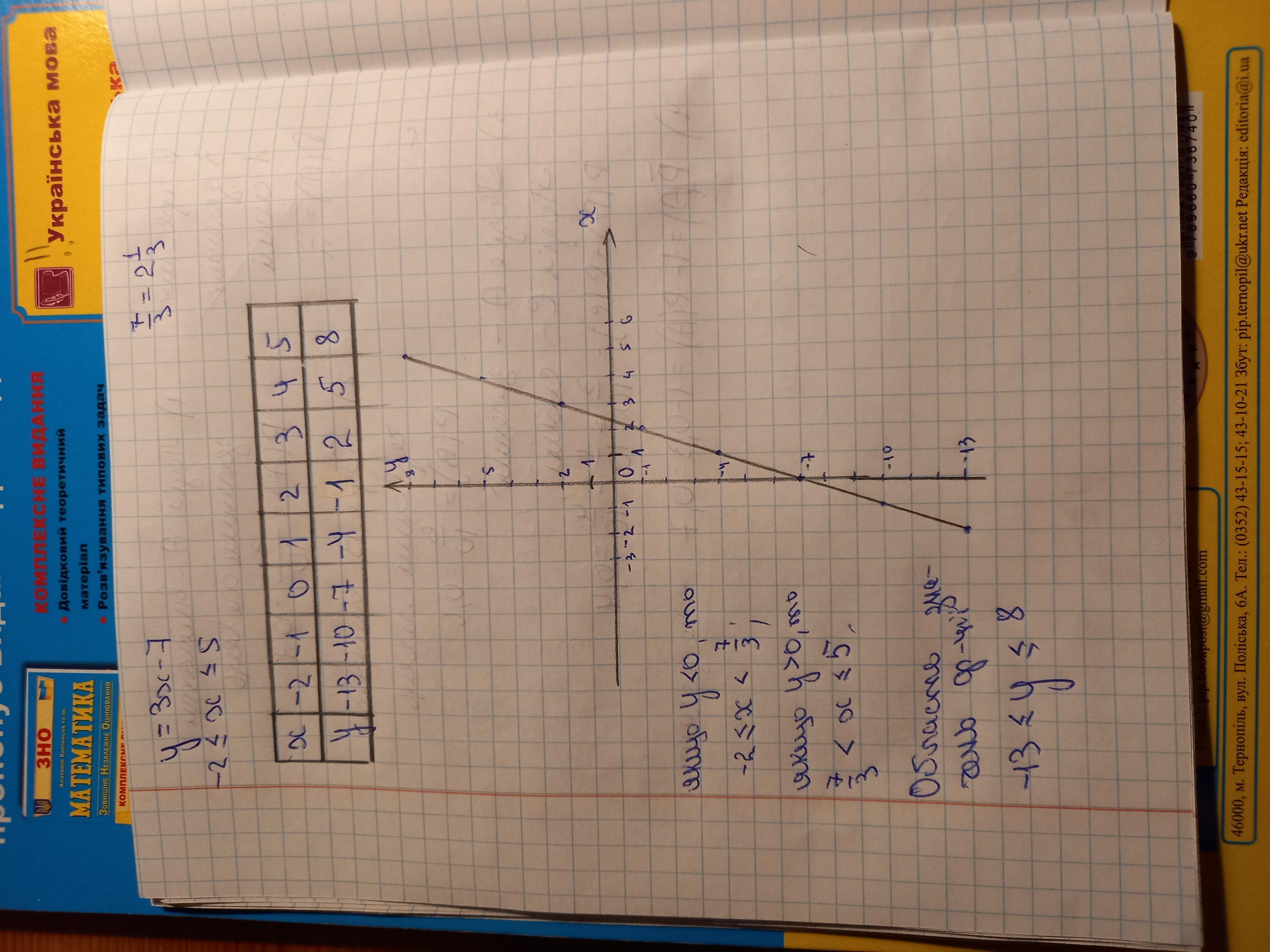 Функція задана формулою y=3x-7, де -2<х<5