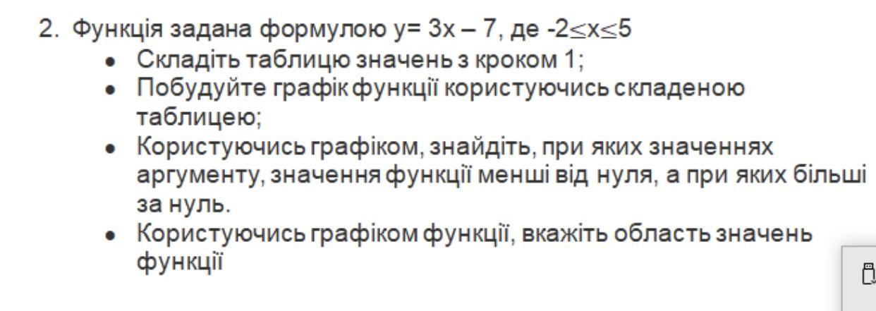 •Складіть таблицю значень з кроком 1;