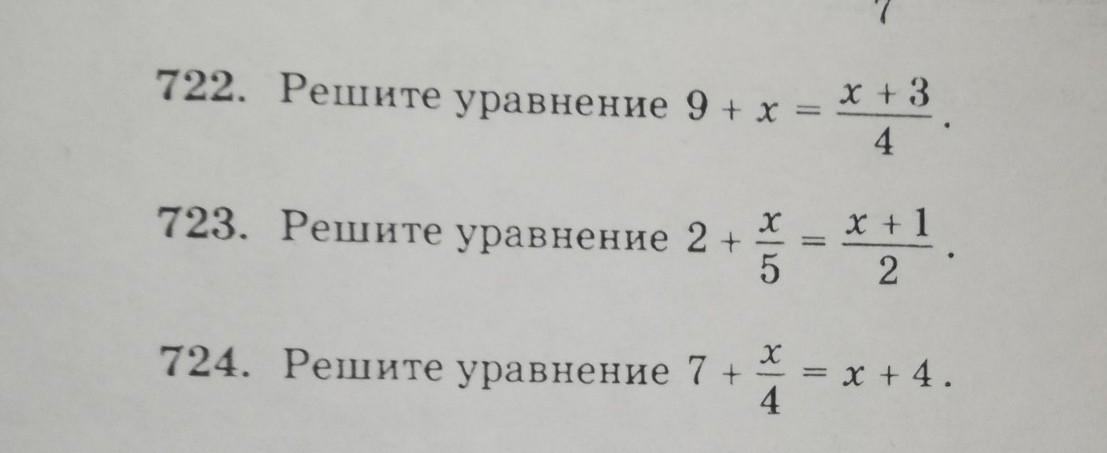 722. Решите уравнение 9 + x = x + 3 4 723. Решите уравнение 2+ x +1 2 5 724. Решите уравнение 7+ = x + 4 . 4