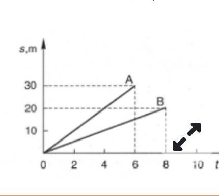 На графике изображен ход двух тел в зависимости от времени. По графику определить: • продолжительность движения тела А: путь, пройденный телом В; скорость движения тела А