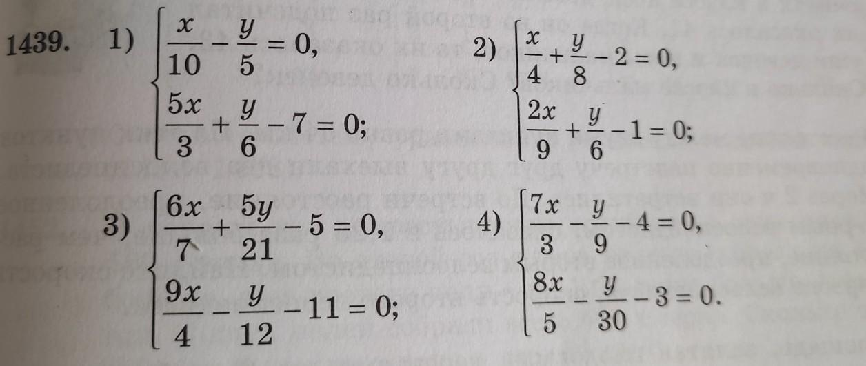 1439. 1) 3) X 10 5x 3 6.x бу + 7 21 9x y 4 12 y = 0, 5 У — 7 = 0; - 6 + -5=0, - -11 = 0; 2) 4) x 4 + y D/ - 2 = 0, y + - 1 = 0; 6 8 2x 9 7x 3 8x 5 y 9 -4 = 0, y 30 - 3=0.