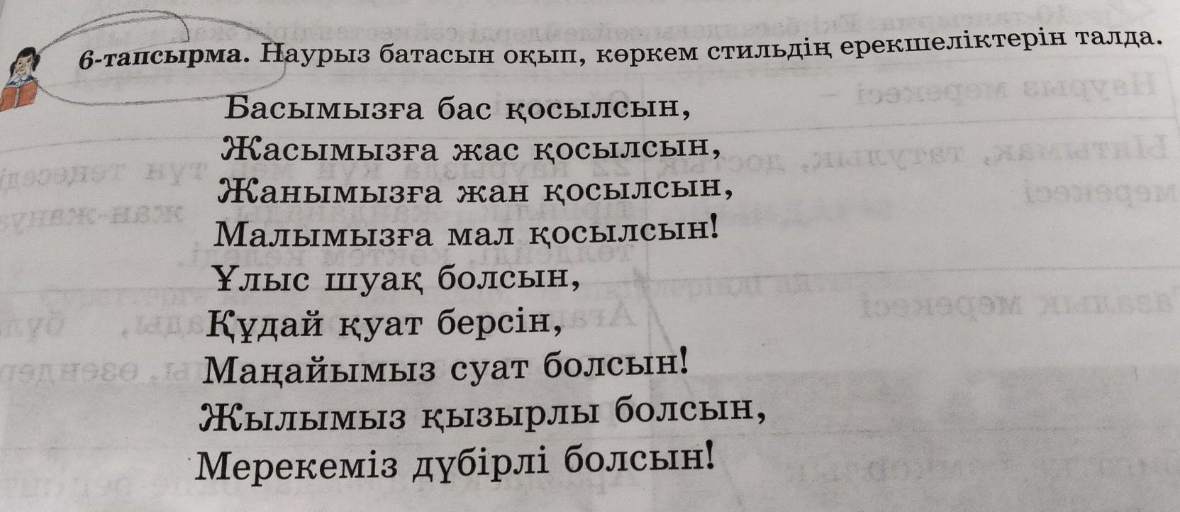 6-тапсырма. Наурыз батасын оқып, көркем стильдің ерекшеліктерін талда.