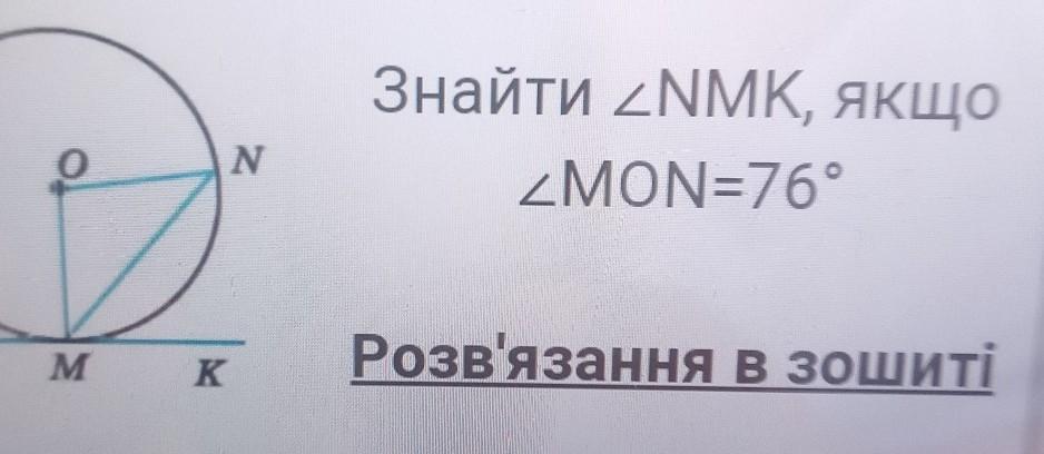 ∠NМК=90°-∠ОМN (так як пряма дотикається до кола під кутом 90°)