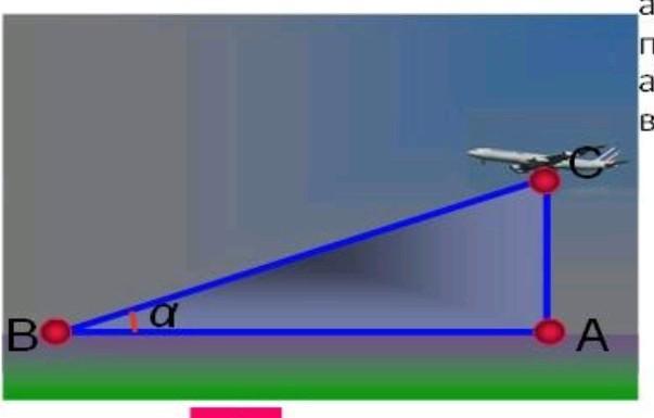 Пасажирський літак, який перебуває над пунктом А на висоті 400м, почав посадку на злітну смугу аеродрому. Знайдіть кута приземлення літака, якщо аеродром знаходиться на відстані 1,2 км від пункту А ВО- A
