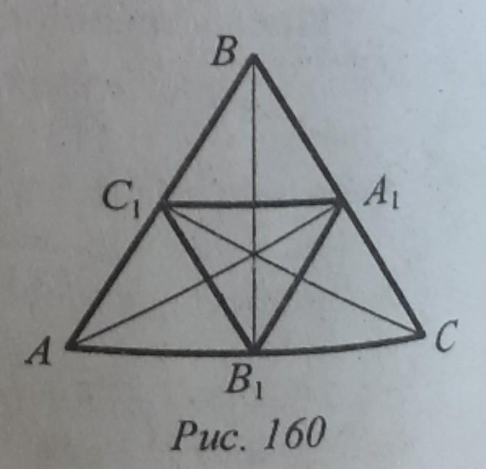 Биссектрисы углов А, В и С равностороннего треугольника АВС пересекают стороны ВС, АС и AB в точках A1, B1, i C1 соответственно (рис. 160). Докажите, что треугольник A1B1C1 - равносторонний.