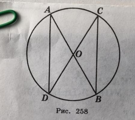 В окружности проведены диаметры АВ и CD (рис.258).Найти угол ABC, если кут AOC=40°