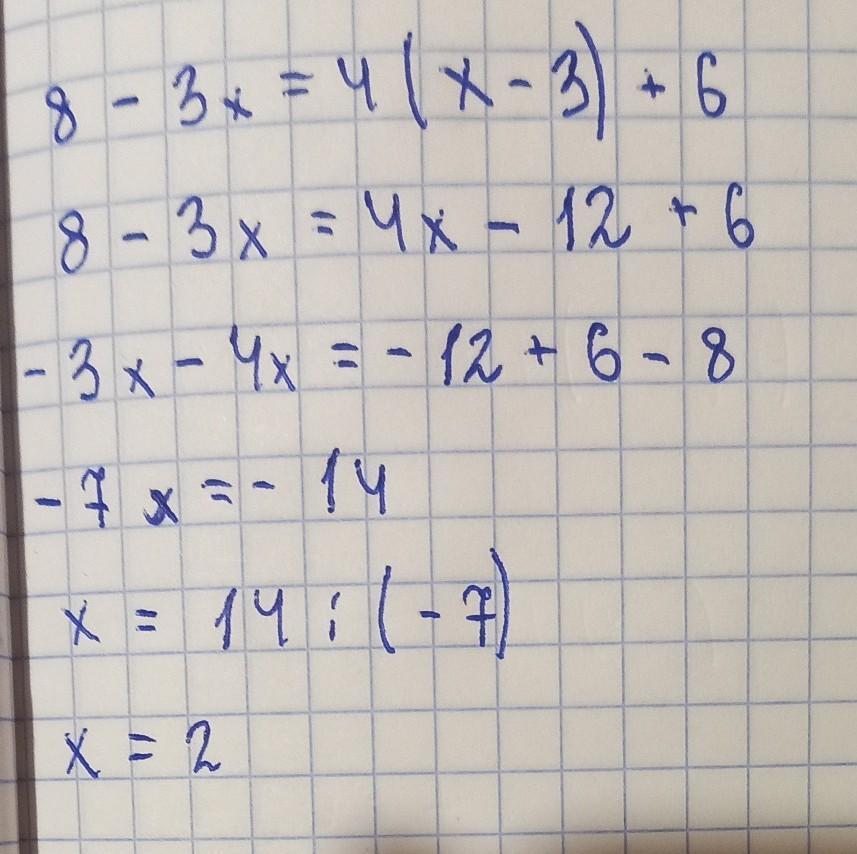 8 - 3х = 4(х - 3) + 6