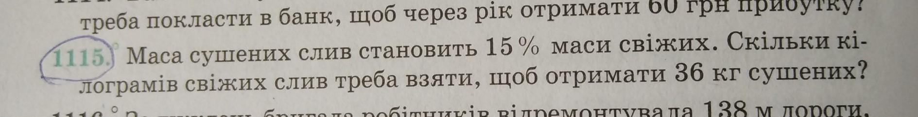 Покрокове пояснення:1)36::15==2,4(кг)-слив
