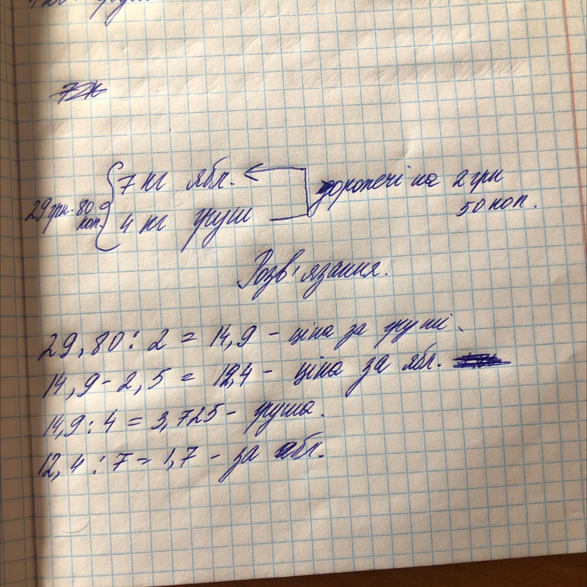 За 7 кг яблук та 4 кг груш заплатили 29 грн 80 коп. Груші дорожчі за яблука на 2 грн 50 коп. Скільки коштує один кг груш, яблук?