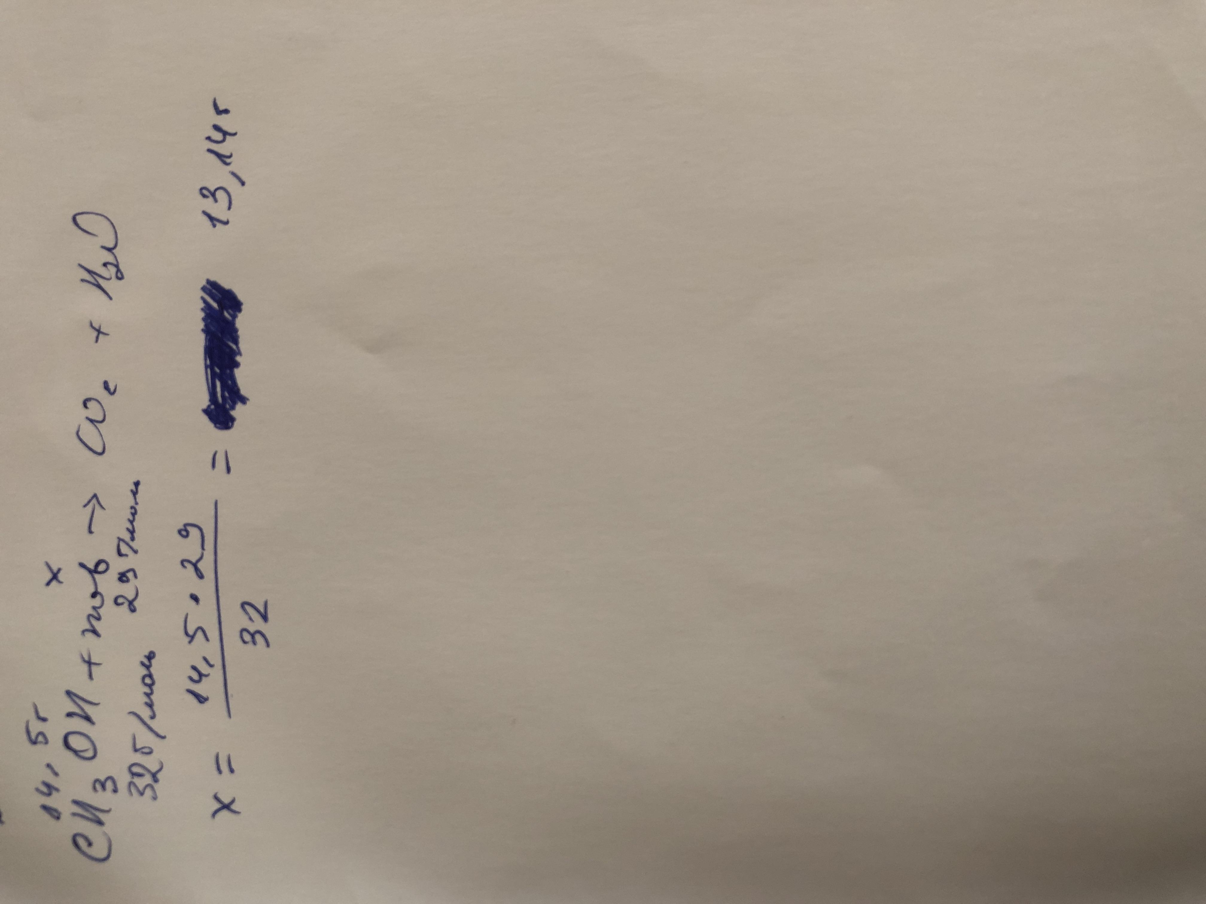 Обчисліть об’єм повітря (н.у.), який потрібен для спалювання 14,5 г метанолу?