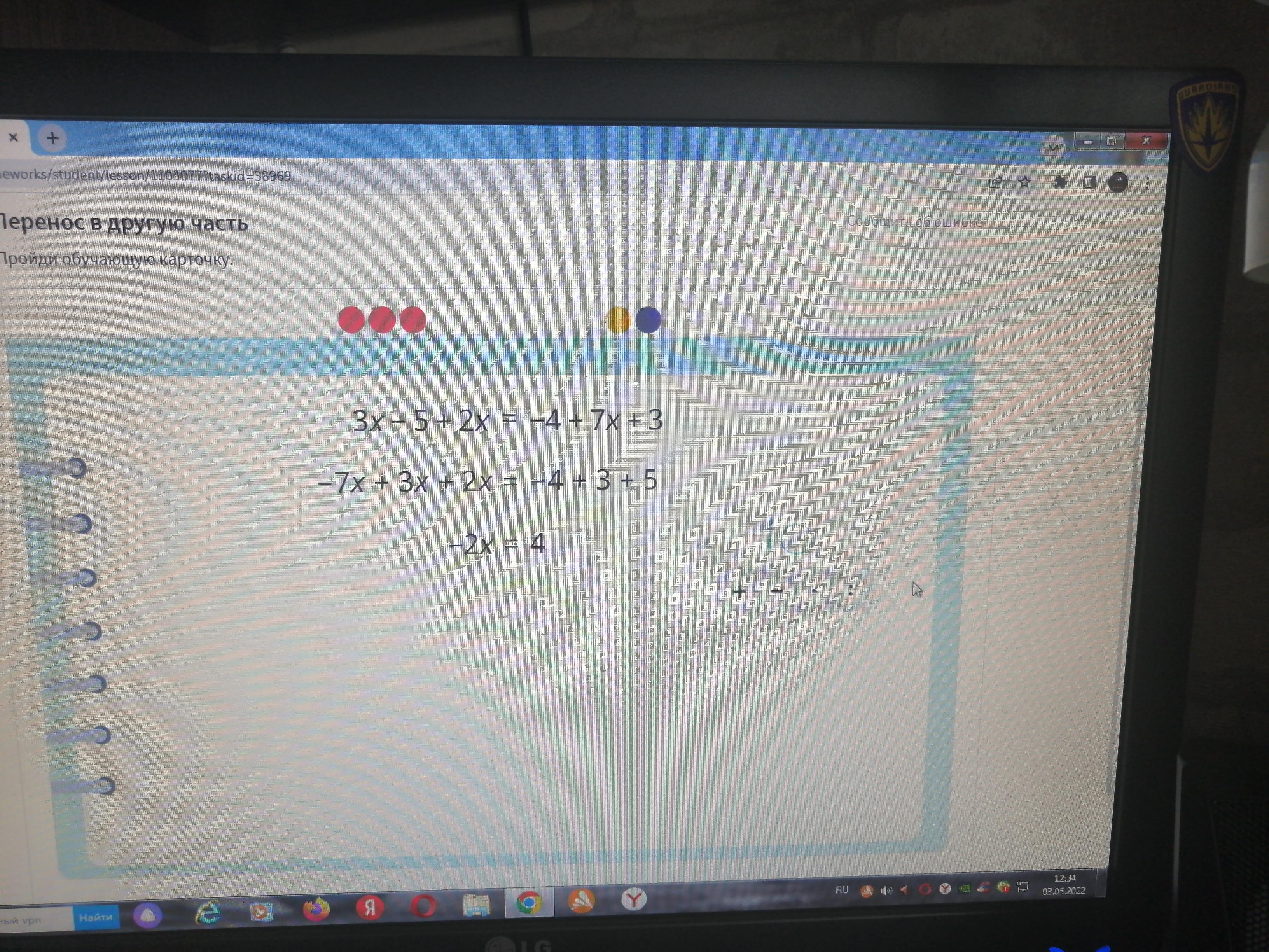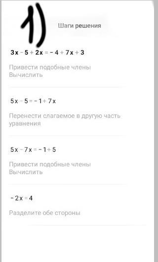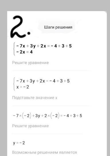 -7x+3y + 2x=-4+3+5 -2x = 4 Решите уравнение