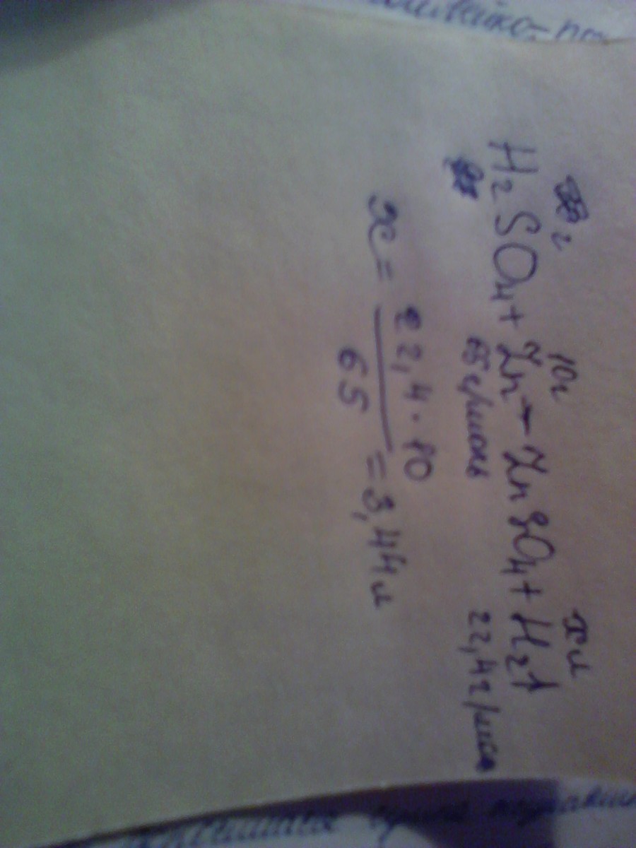 Водород какого объёма выделился при добавлении цинка массой 10г к раствору, содержащему серную кислоту массой 30г