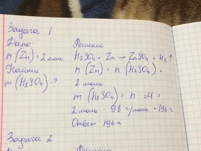 Определите массу серной кислоты необходимой для полного растворения 2моль цинка