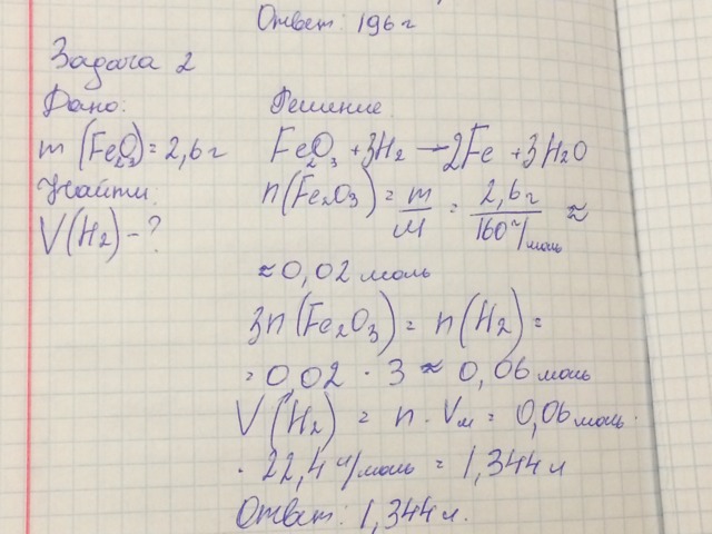Вычислите объём водорода необходимого для взаимодействия с 2,6г оксида железа.