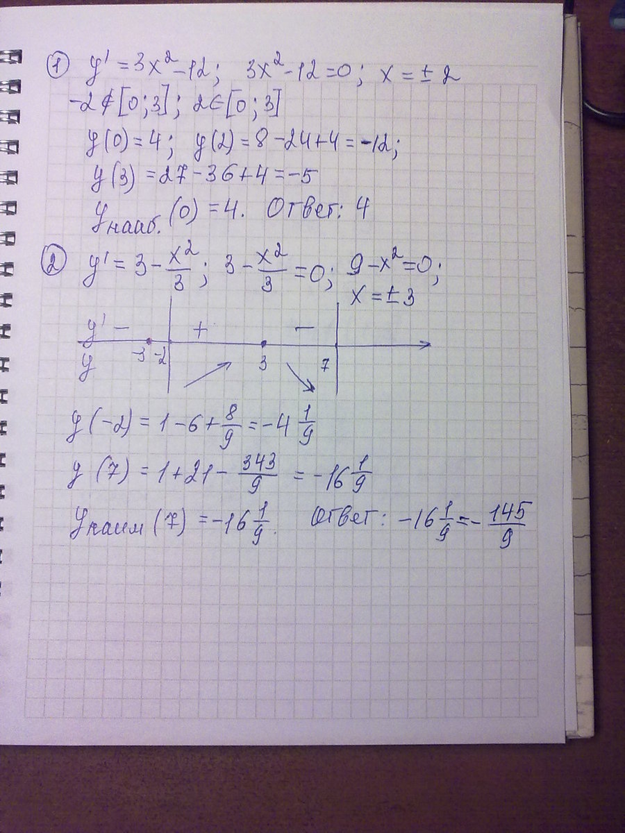 Во втором задании специально показала стандартный путь поиска наибольшего (наименьшего) значений функции. Но, как видно из №1,3,4 можно обойтись и без этого. Правда, не всегда