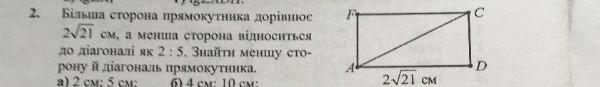 Маємо прямокутний трикутник, де більший катет 2√21 см, менший катет 2х см, гіпотенуза 5х см.