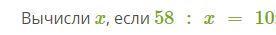 1. Вычисли x, если 58 : x = 10.
