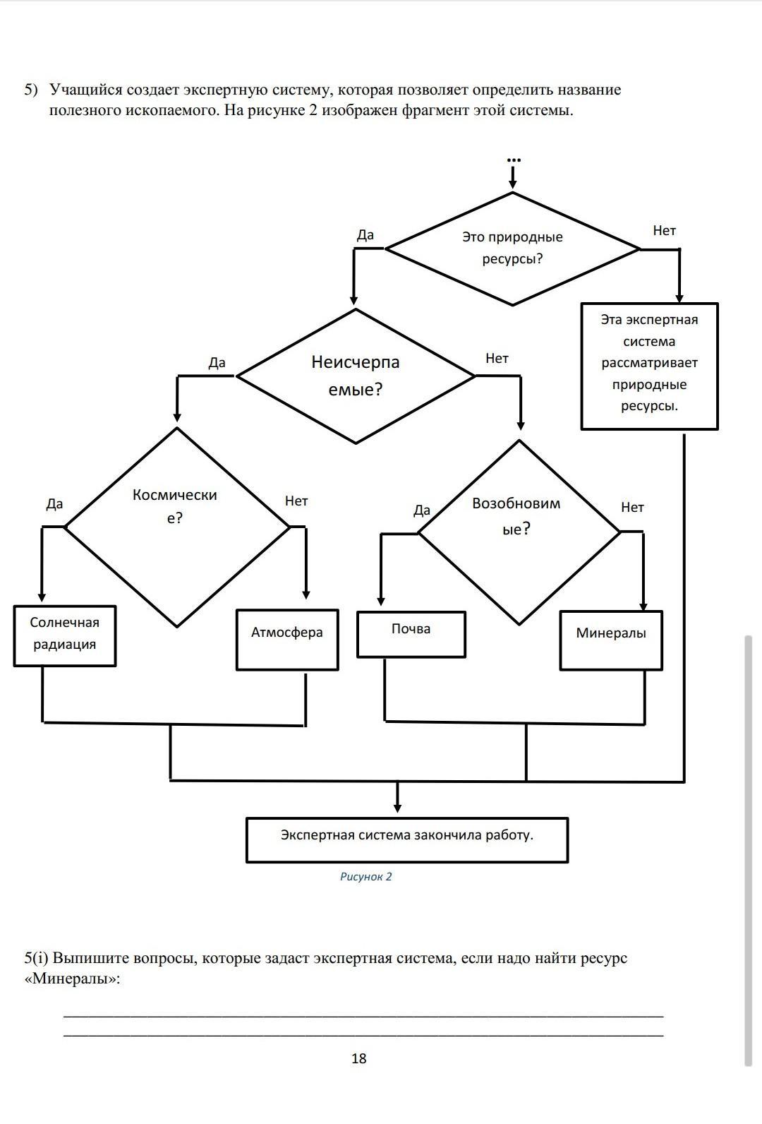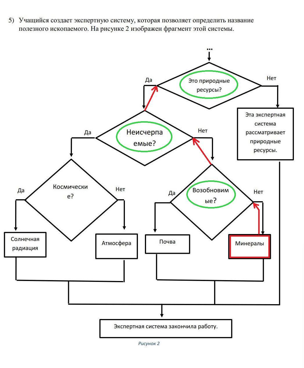 Выпишите вопросы, которые задаст экспертная система, если надо найти ресурс «Минералы»:
