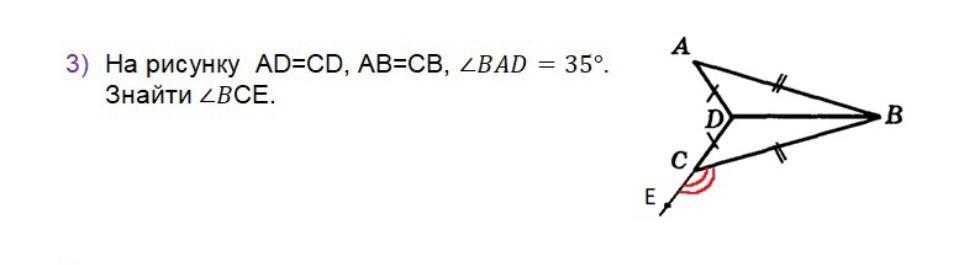 Нам дан угол ∠BAD, который 35°. Из-за того, что эти треугольники конгруэнтны конгруэнтны, ∠BCD также 35°.